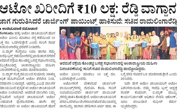 for women. The Government of Karnataka will extend all possible support to such efforts, including facilitating licences, helping beneficiaries access relevant subsidies, and enabling infrastructure such as EV charging stations for women drivers.