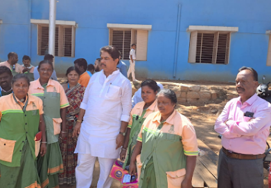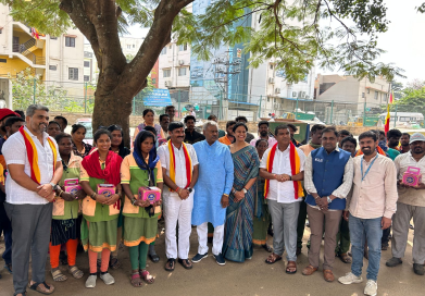 Shri. C. K. Ramamurthy, MLA, Jayanagar, distributed sweet boxes to the Pourakarmikas at Byrasandra, B.CLIP leaders Saravana S., Santhosh Bhat & Chinnagiriyappa were also present.