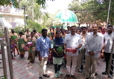 Mr. Byrati Basavaraj, MLA, K R Pura Constituency, distributed the sweet boxes to Pourakarmikas