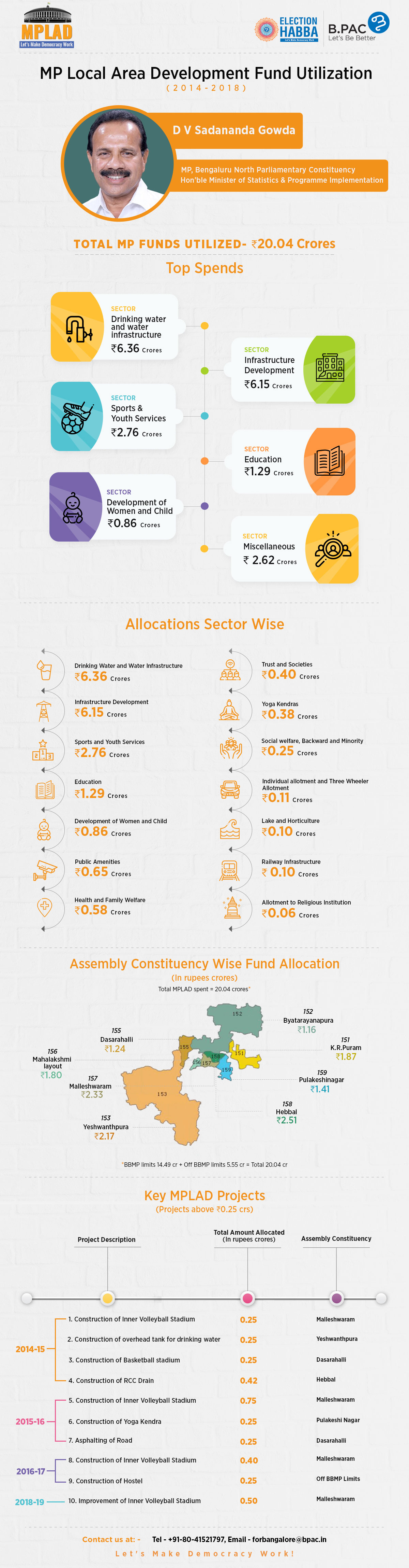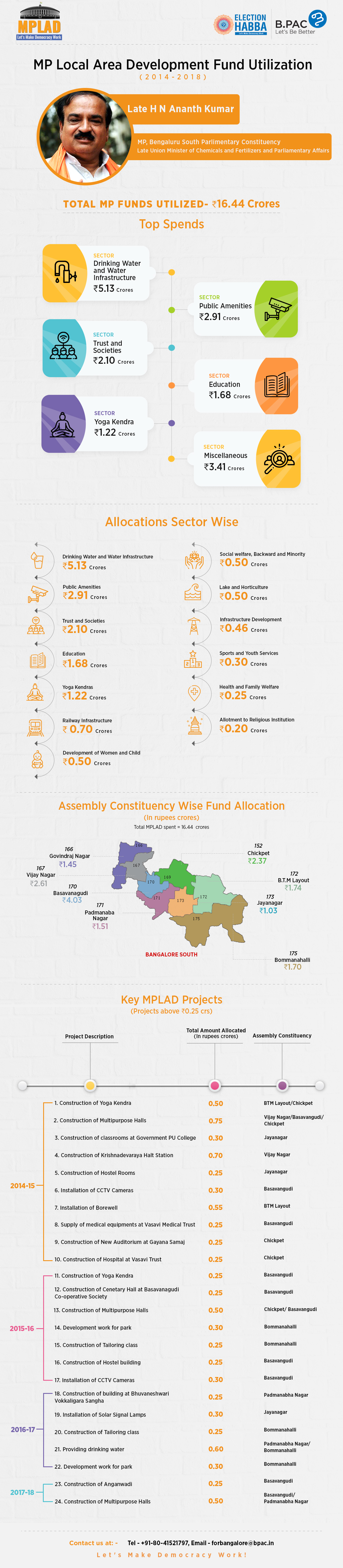 - 86 % of the MPLADS fund spent within the BBMP limits; 14 % in off BBMP limits