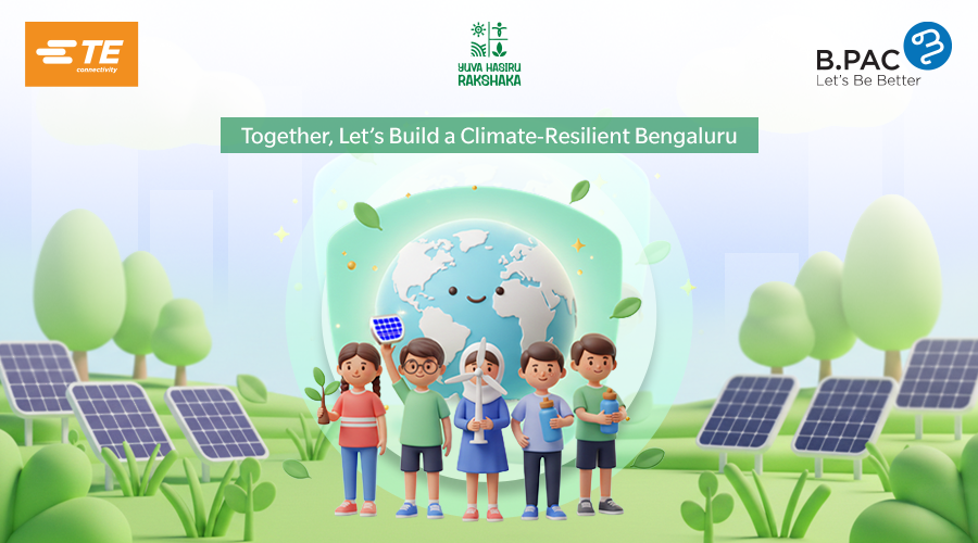 The Yuva Hasiru Rakshaka (YHR) Program is an initiative by B.PAC (Bangalore Political Action Committee), in collaboration with TE Connectivity India Pvt. Ltd. and the Bengaluru Climate Action Cell (BCAC), to actively involve Bengaluru’s youth in building a climate-resilient city. The program empowers students to become ambassadors of environmental awareness and sustainability within their local communities, aligning directly with the objectives of the Bengaluru Climate Action and Resilience Plan (BCAP).